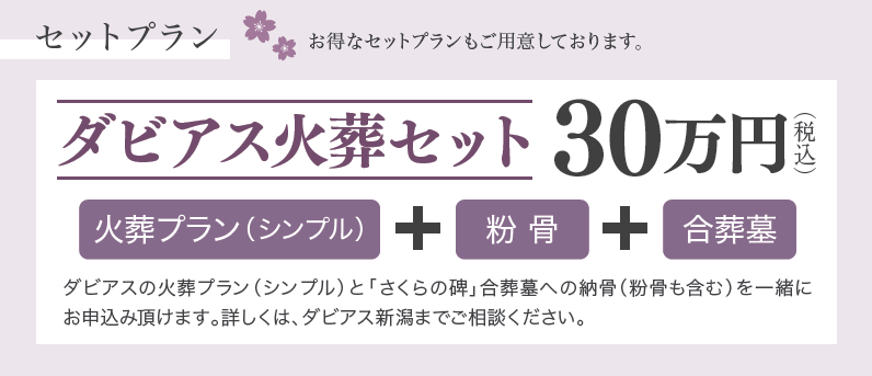 ダビアス新潟では、シンプルでも後悔しないお別れをご提案するため、スタンダード、ベーシック、シンプルの3プランをご用意しています。