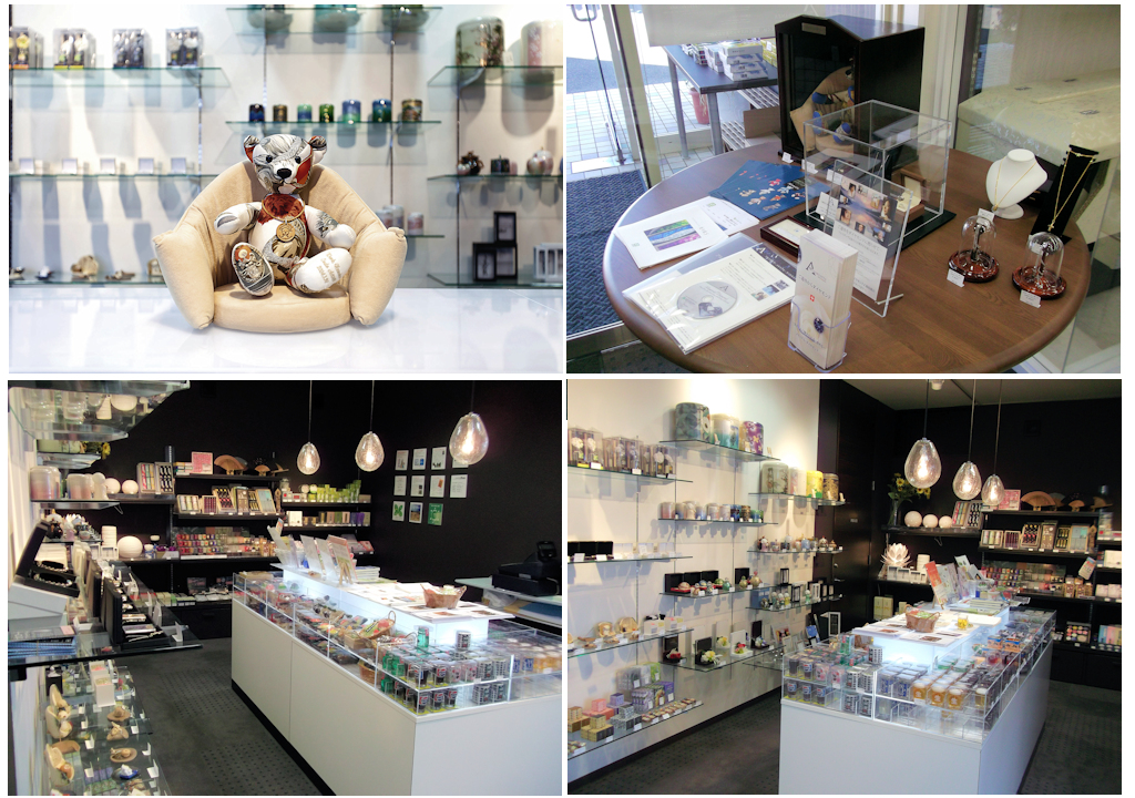 また、ダビアス新潟女池店では、手元供養専用ショップ「ともし灯」も併設しており、遺骨を納めるグリーフペンダントや、故人の愛用品でつくるテディベアなど、各種取り揃えています。